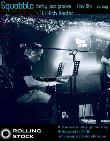 "Squabble" with a funky jazz groove, influenced by the soul jazz greats of the 1960's and 70's, infused with infectious rhythms, hooks and melodies. A six piece band comprising