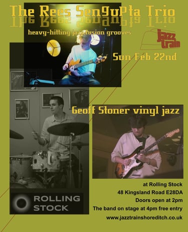 The Rees Sengupta Trio bring a fresh, cutting-edge take on modern jazz fusion to Jazztrain Shoreditch on Sunday 22nd February. Formed in London by three close friends, the trio blend heavy-hitting fusion grooves.