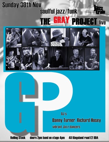 The Gray Project 10-piece, you can expect a funked-up soulful jazz/funk band of mature, talented & experienced musicians with a brass section delight.