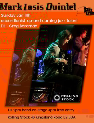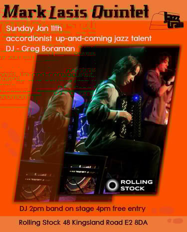 Mark Lasis is a young London-based accordionist and composer whose music combines elements of jazz, funk and rock among other styles. His innovative sound, combining unique instrumentation and mature original compositions, has garnered him recognition as one of the most promising emerging jazz artists in London.