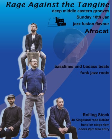 Get ready for a genre-blending journey with Rage Against the Tagine — a powerhouse fusion group mixing the soul of jazz with the fire and pulse of Middle Eastern & North African rhythms.